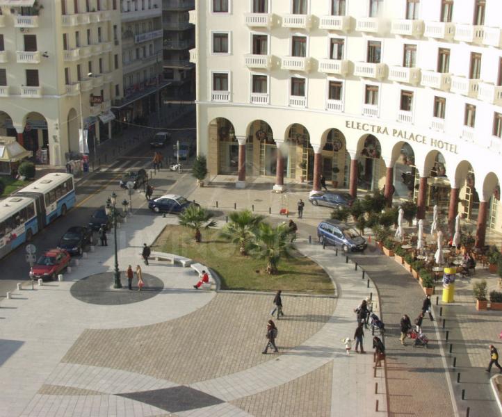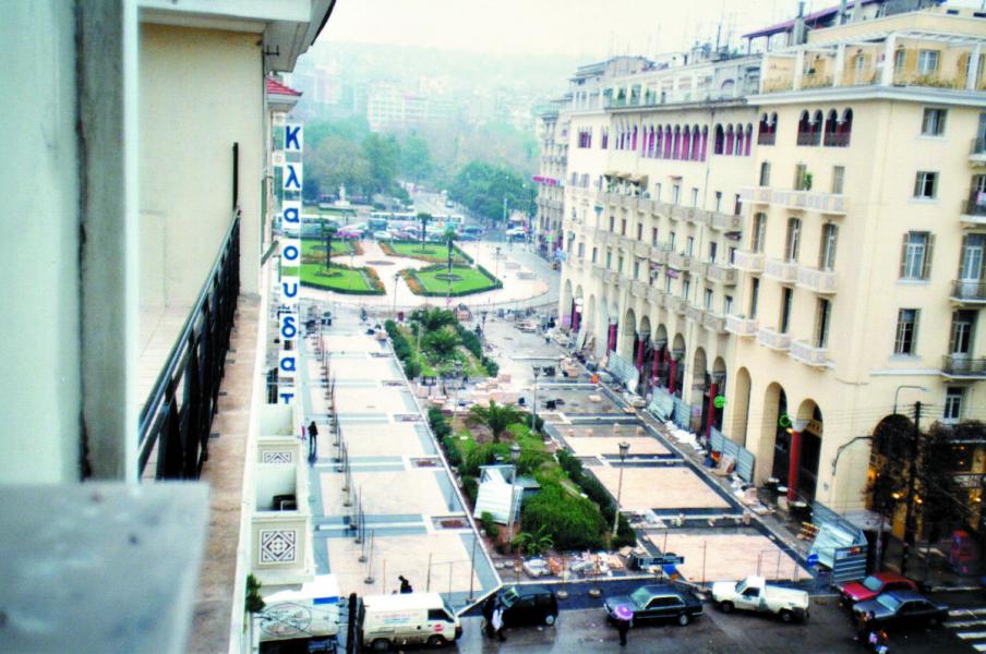 Eurotravertine and Evenos (Edessa) black, both quarry owned materials were selected in the renovation of the square in the end of 1990s to offer to the landscape of the square its preserved natural feeling within the city center boundaries.