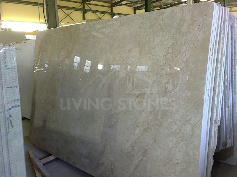 Crema iris is a beige marble with reddish local appearances that is being quarried in the south of Greece (Peloponnese). Although referred to as a marble, scientifically is being categorized as a very hard limestone suitable for exterior and interior applications.