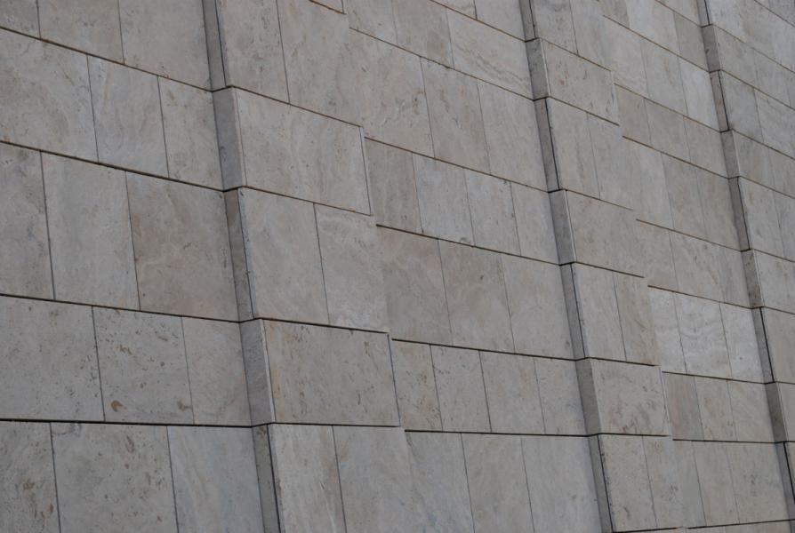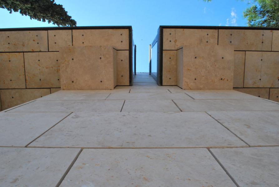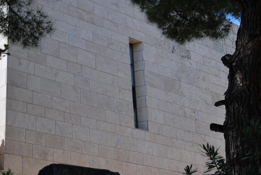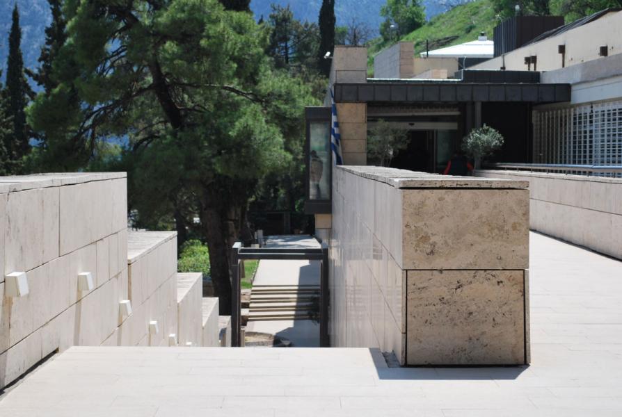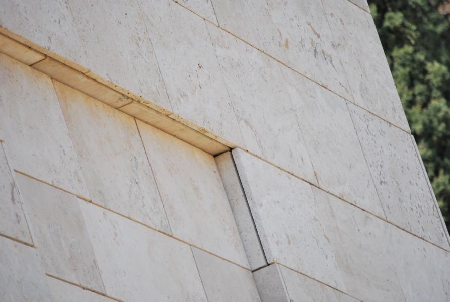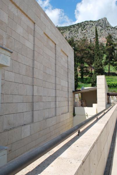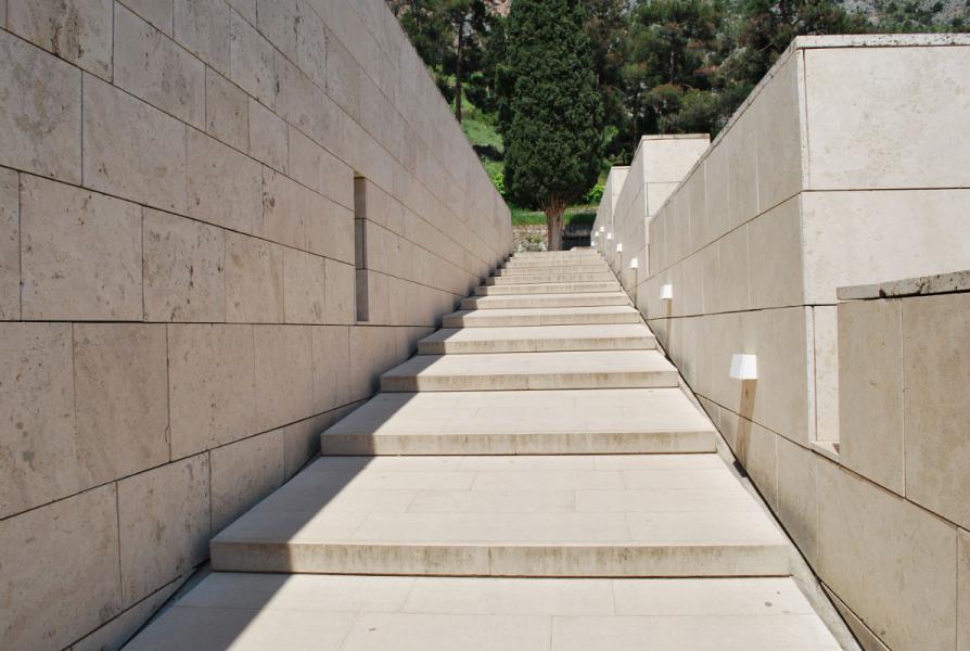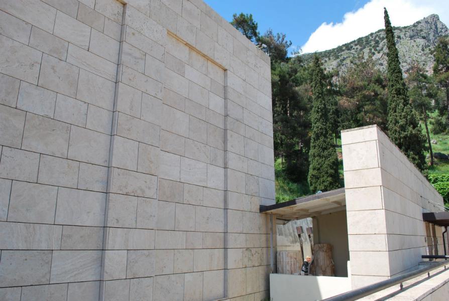 Beige Classico Eurotravertine quarried in north of Greece was chosen as the main covering surface of the exterior wall of the Archaeological Museum of Delphi, designed by Alexandros Tombazis architectural team