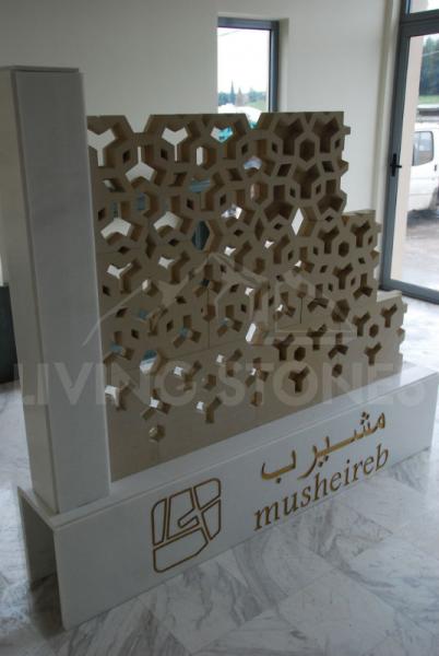 The Musharabia pattern designed by Mossessian & Partners was originally specified to be manufactured using high precision stone art equipment and the CY Limestone material, which is a limestone friendly to Qatar demanding environment.