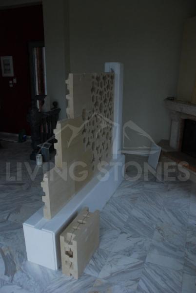 For the construction of the mockup the application of 5 axis water-jet as well as 5 axis CNC was used in order to provide fine tuning of the puzzled wall.