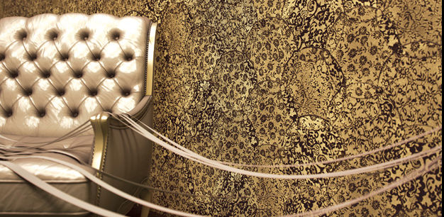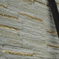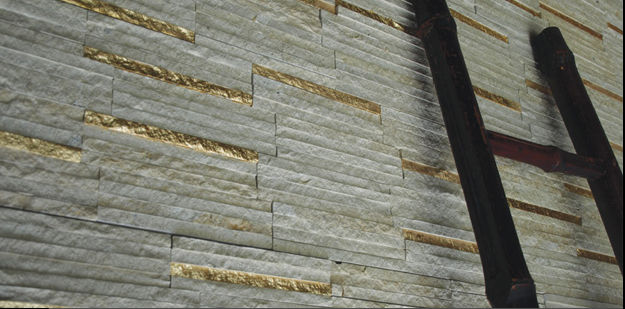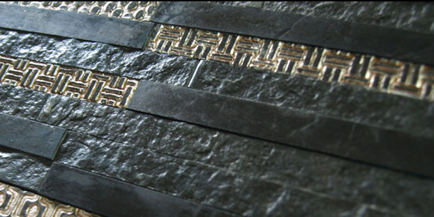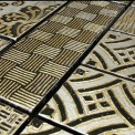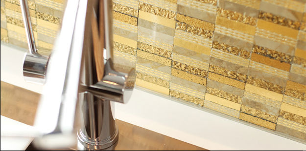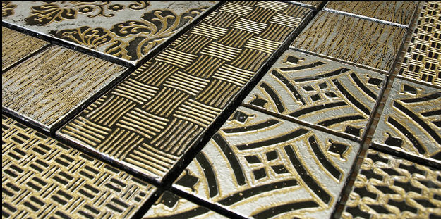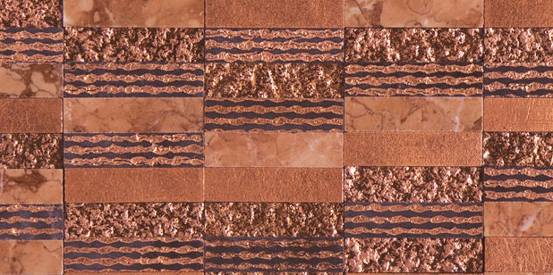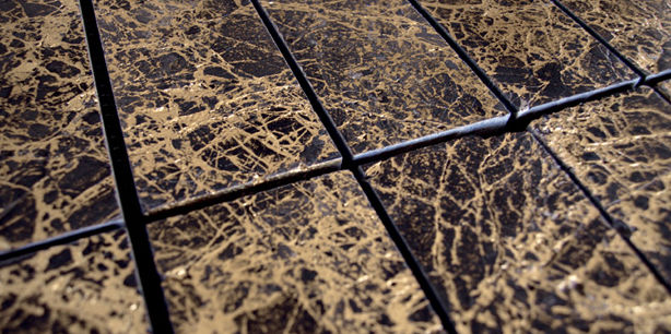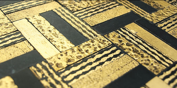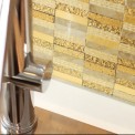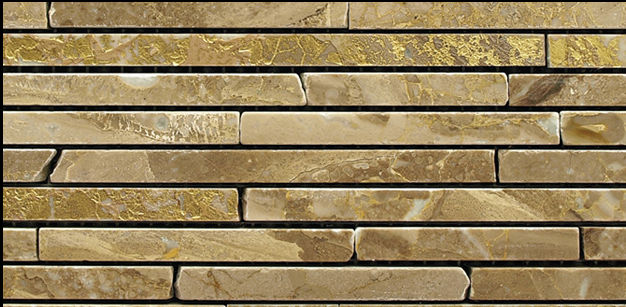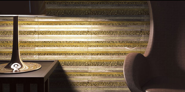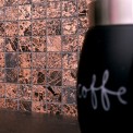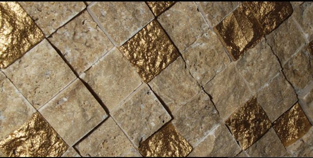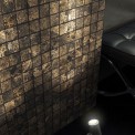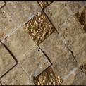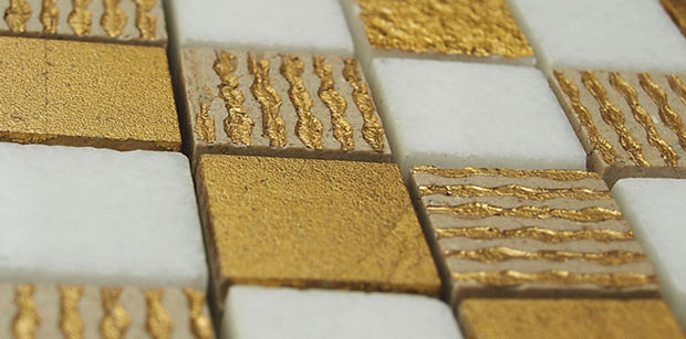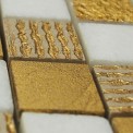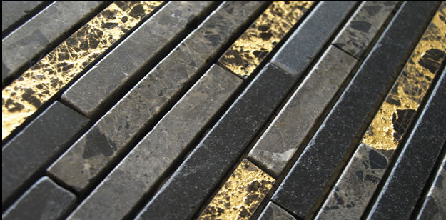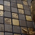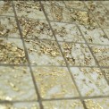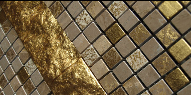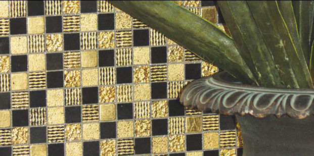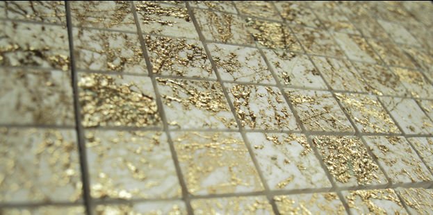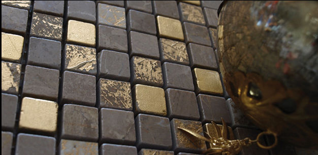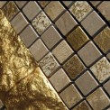 Some or 100% of the pieces within a mosaic tile are covered with gold or other metal finish to create a luxurious designed effect.