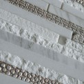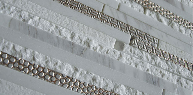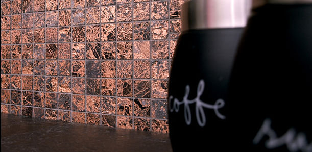 Mosaic Tiles are composed of tiny small marble pieces joined together under the support of a net (mesh) that holds in the form of a 1cm tile the various small dimensional pieces.