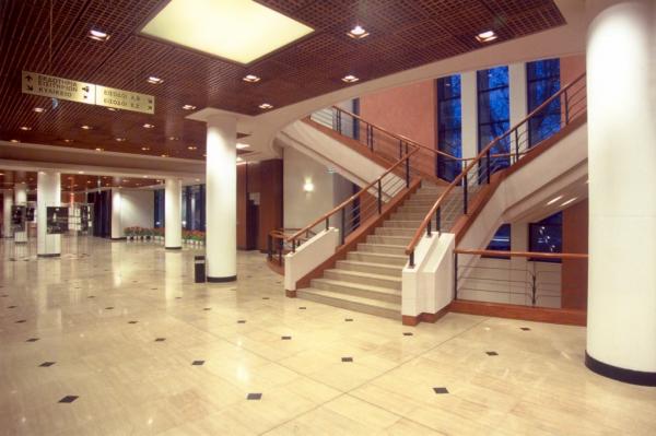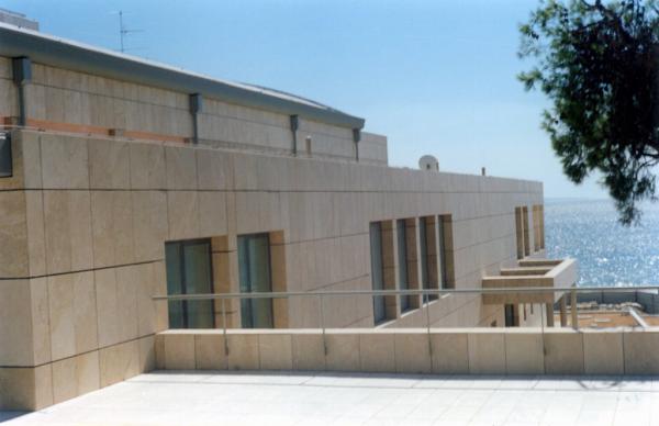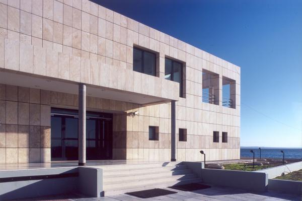 The architectural team has chosen for the exterior facade of the Thessaloniki Royal Theater the eurotravertine beige classico material to offer the building an earth-friendly appearance as homage to the old theater preceding to the new one at the same location.